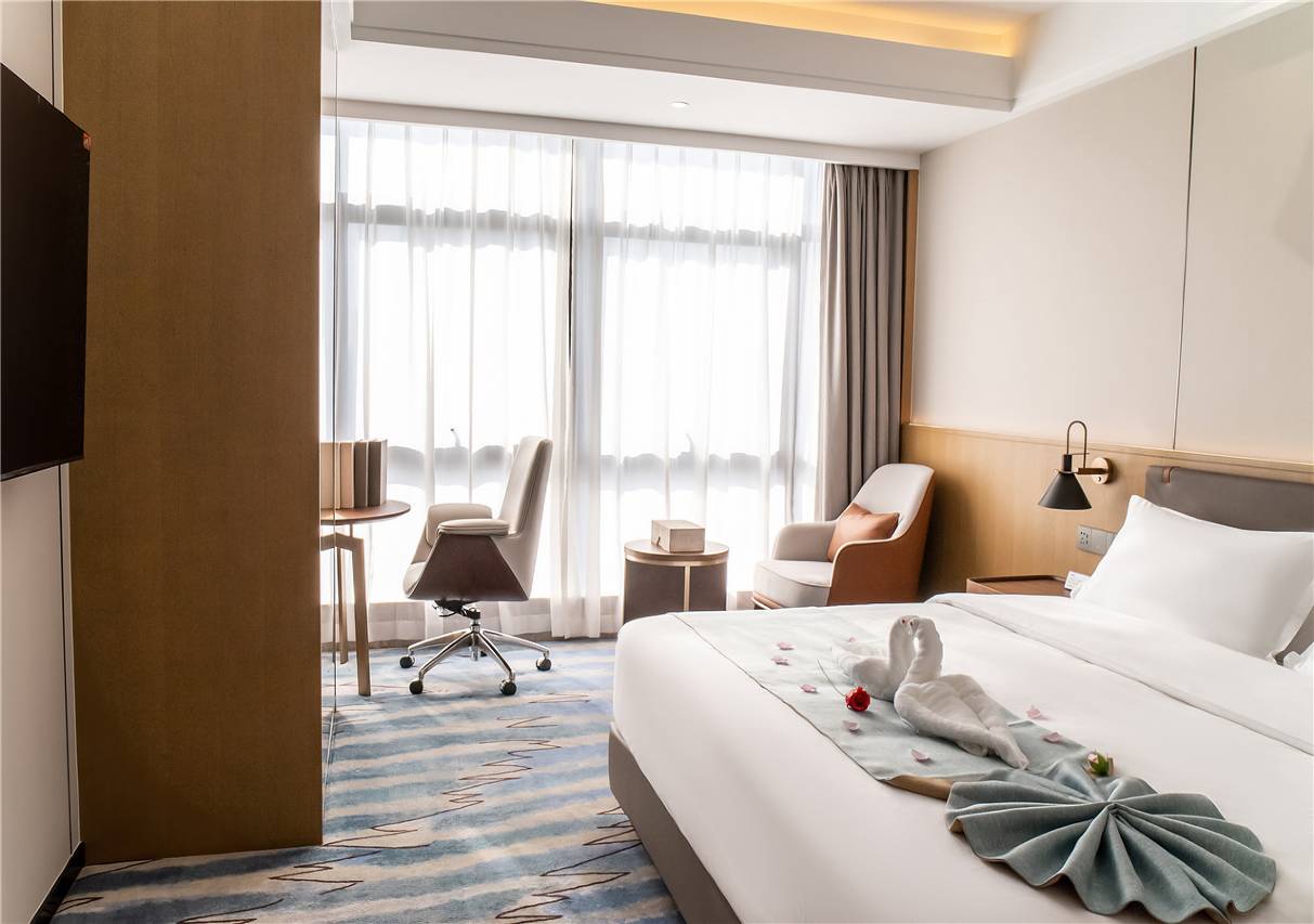 前台非常热心免费升了房型,酒店环境优越,隔音也不错。酒店大厅敞亮,房间干净卫生,宽敞舒适,卫生间热水很快,酒店位置靠近吾悦广场、安徒生童话乐园。前台的亚楠,雪雪和星星服务热情。