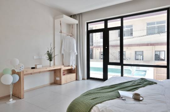 期惜民宿位于著名避暑圣地北戴河,地理位置优越,交通便利,距离海边仅五分钟车程,依山傍海,是您来此旅游的优质落脚之处。建筑内外墙以纯白基调,与复古木结构门窗相结合,并运用简洁欧式线条勾勒,简单却不失高级,是多元文化的表达。民宿上下两层共有4个房间,客房采光良好,整体通透明亮,民宿里面配备了开放式厨房,智能管家,KTV麻将室,小院儿路天烧烤,油米盐酱醋茶全都有,非常适合携朋友家人入住。