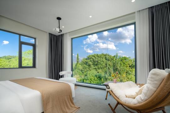 这是一座有诗情画意的独栋别墅,装修设计理念出自云南民宿设计大师。房间布置风格简约而不失精致,超大的落地玻璃观景窗更是每个客房的标配,非常适合拍照出片。院内休闲活动空间约2亩左右,休闲娱乐设施齐全,楼顶还有空中花园,可以在这里品上一杯咖啡,感受大自然的鸟语花香、莺飞燕舞。喜钓的客人可以免费体验江边钓鱼、烧烤、露营、撑橡皮艇等娱乐项目......这里的厨房还可以供客人自己做饭,无论是亲子、情侣、家庭聚会还是公司团建都很合适。