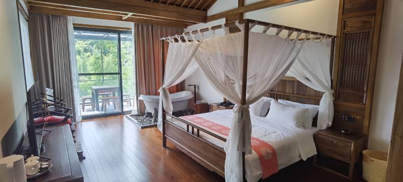 归乡苑的建筑风格融合了传统与现代元素,充满了浓厚的乡村氛围。我们拥有精心布置的客房,每间房间都充满了温馨与舒适。客房内设施齐全,为您提供一流的居住体验,同时窗外的景色更是令人陶醉。您可以欣赏到村庄的田园风光,远眺山峦起伏的壮丽景色。