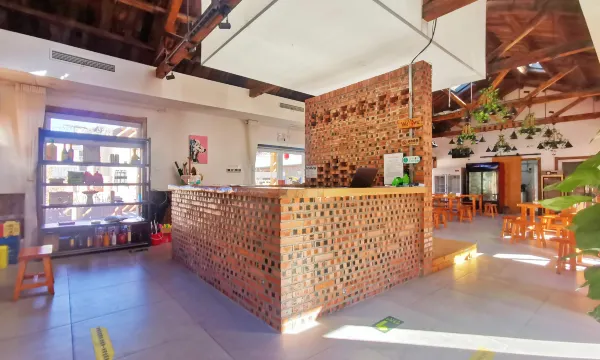 “红仓”设计突出粮仓主题,建筑风格定位为乡土风格民宿建筑。项目占地20亩,分为客房区(11套庭院及1套谷仓独栋组成,分为9种套型)、配套区(绿野剧场、鲁班工坊、锄禾餐厅、扶摇阁KTV包房、醍醐居、游戏机、娃娃机、蹦床)、桌球室,拓展区(乔治农场、河滩营地)。