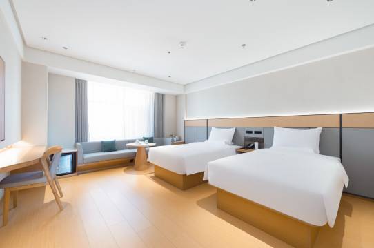酒店在一个院里,非常安静,不嘈杂,点外卖方便,有机器人送餐到门口,体验感很赞!房间配置智能马桶,服务员都很热情,而且很为顾客考虑定了大床跟家庭房跟贴心的安排房间都在一个楼层,客房服务员到房间处理问题很及时,卫生做的也很干净,酒店环境不错,客房用品齐全,毛巾被子也都很干净,很满意的一次入住!