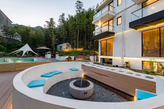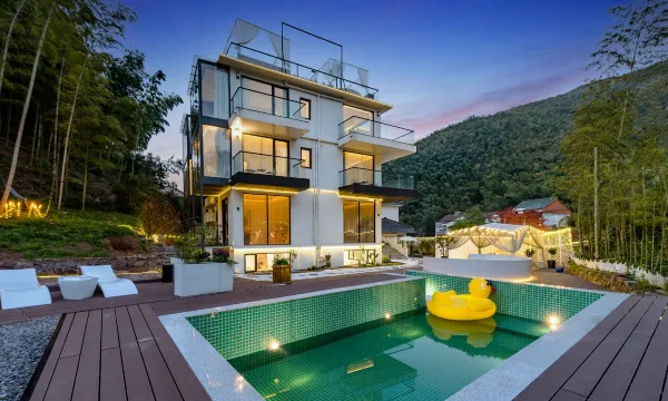 民宿位于宜兴市湖㳇镇南部丘陵山区,三面环山,自然生态环境优良。距离宜兴市高铁站约30分钟车程,距宜兴各大景区10-30分钟车程。民宿有大床房、标准间。室内公区150平、室外1000平,包含KTV 、多媒体室、户外篝火、烧烤区、竹林泳池、天幕帐篷、顶楼泡池、茶歇 、竹林Party房等多功能于一体。门前小桥流水人家,店后树影婆娑。情不自禁让人放慢脚步感受这个宁静的村庄,呼吸清新的空气。远离城市喧嚣,享受负氧离子。