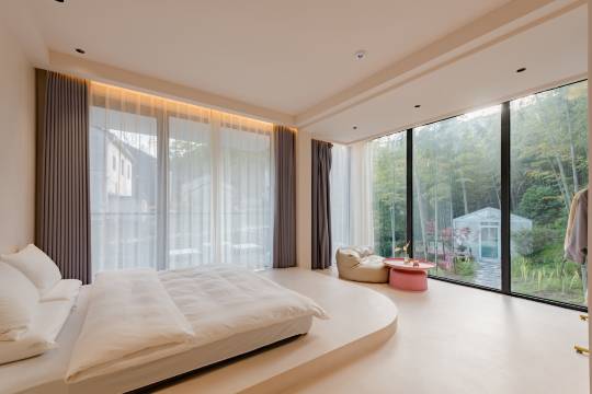 房间可以看见竹林,床很舒服,环境非常好,非常安静,早餐丰富,管家服务热情,阿姨很和蔼,早上起来去爬了二十三湾,空气太棒了,还可以朔溪,小朋友玩的很开心