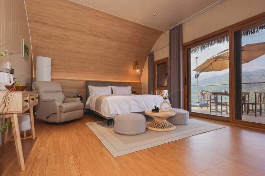 老板是懂设计的。必经之路就很容易出片。服务也非常好。能平衡好野奢酒店与农家乐趣,夏天还可以溯溪,相信会更有乐趣。