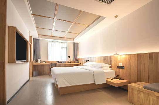 酒店环境优美房间设施齐全,服务人员也比较热情,跟一些快捷商务酒店很不一样。房间设施新,床品舒服,总体物超所值,是一次非常满意的体验。可停车也很方便,离火车站近,七八分钟左右就到了。下次还会再来光临小店哟