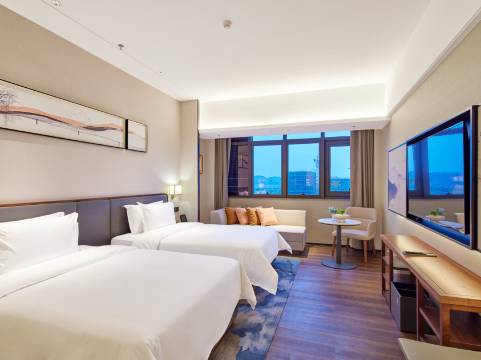 房间环境很好,前台小姐姐服务态度也很好,一楼还有洗衣房和健身房,交通也很便利,可以免费停车真不错,二楼还有订餐包间,不用出去找饭店了,晚上还去了附近的无想水镇,走路去也非常近,非常推荐推荐👍👍👍
