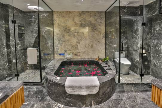 一家四口,在老板温馨提醒下改成了江景套房,贴心的在我们入住前就把阁楼活动区也铺成了榻榻米床铺。这样我们就住着很舒心了,担心阁楼回热,没成想居然中央空调,别说阁楼了,连厕所都有空调,智能马桶,还有小度智能家居系统,声控一切!独门别院,后门出去就是潭水边,特别方便,两层带地下一楼的餐厅有电梯🛗……怎么说呢!就是各种惊喜不断!很安静,早上起来去看云雾缭绕如诗如画的景色,回来吃早饭,再回房间躺上一躺。惬意😌