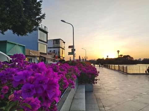 由于距离近,岩前村风情街、水月东堤成了散步及看夕阳的地方。