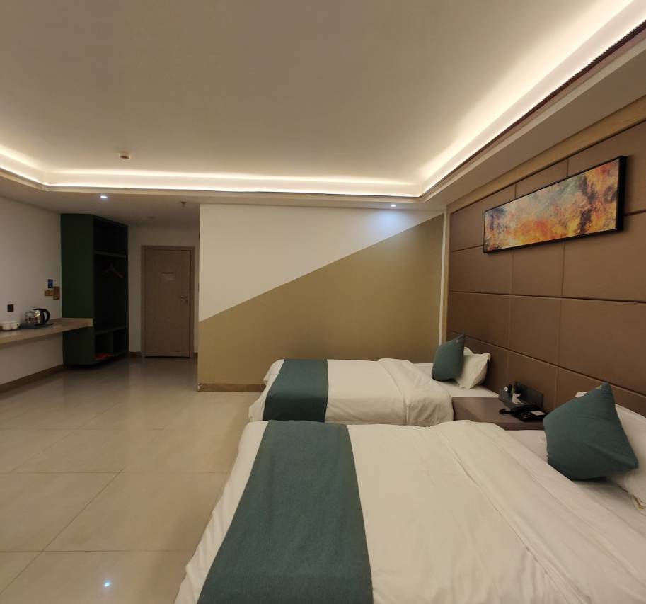 非常满意的一次入住体验!店家派车去港口接我们一行 5 大 2 小回酒店(不敢想像这个价位的酒店可以提供接送服务)!刚到酒店刚好遇到大雨,司机师傅和前台的小姐姐出门口帮我们撑伞从车上下来!我们没淋湿但他们却淋湿了!非常的不好意思!房间很大!空调打到凉!大堂隔壁就有一个 24 小时的小超市,买东西很方便!附近有饭店价格也亲民!此行徐闻行主要是去看南极村和登云塔和去一中夜市吃生蚝🦪!我们七个人到南山车站包了一辆商务车去到南极村,结果大失所望,,登云塔和一中夜市很近走路就可以到!以后有机会还会选择入住✌️!