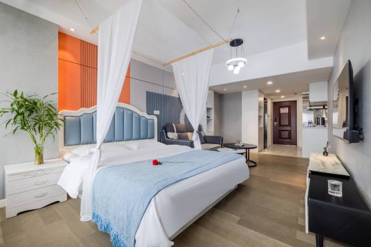 公寓就在茂业天地楼上,去海边很近走路10分钟就到了。房间很宽敞,卫生很干净,房间的设施设备全,服务态度很好!