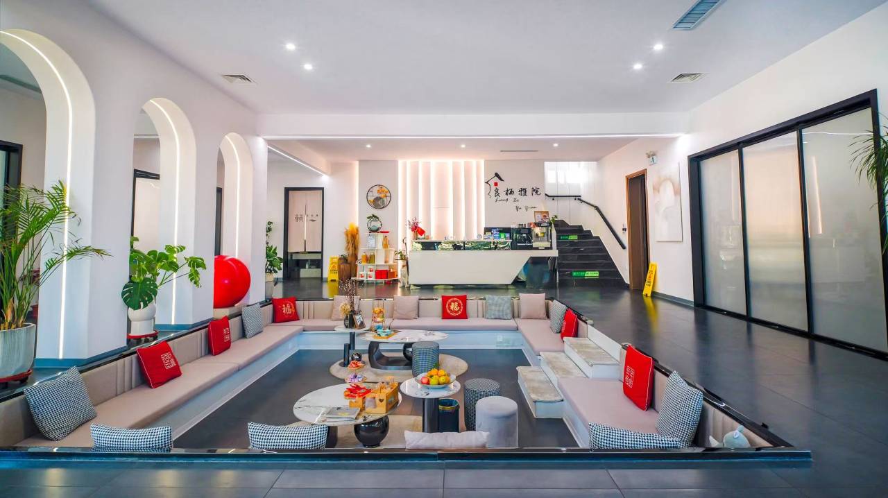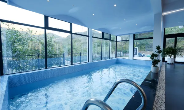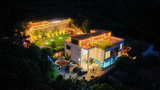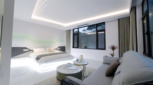 走进室内会发现另外一番天地,室内除了被现代风格的设计所吸引,最吸引人的还是室内的游泳池,一叶透明的小舟,是一道拍照打卡的美景。室内的公区也很大,除了有散座的餐厅还有清新典雅的包房,KTV、茶室、会议室也必须是配备的,楼顶还有一大片楼台,在楼顶边烧烤边看美景,一定没有比这更惬意的事情了。房间设计独特,是科技与现代的结合,全屋智能化设备,语音智控。全明客房,落地窗让你既能享受山间的美景亦可感受温暖的阳光。全屋地暖,配备水晶浴缸,住在这里让您暂时远离城市的喧嚣,享受尘外美景。
