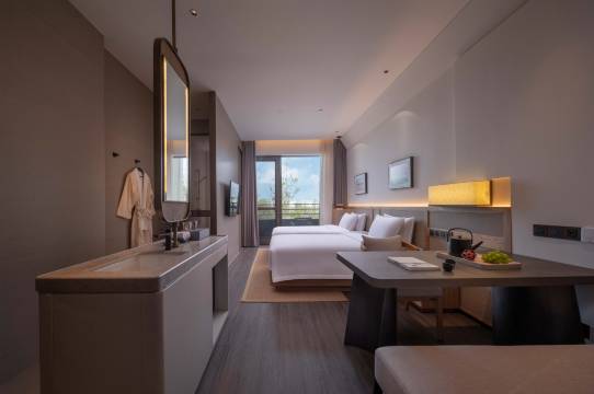 酒店内设有免费停车场,房间分为两栋,客房有套房、湖景、山景、豪华房型等,床位290个,设备齐全,环境舒适,均有空调,国内直拨电话,无线网络,独立阳台,设施豪华,同时酒店配备有中餐厅、大堂吧、宴会厅、康体中心、国际会展中心、生态文明展示馆等完善的配套服务设施,还有专门的沿湖栈道,可以让您在酒店就能观赏到候鸟,为您提供美好的度假体验。