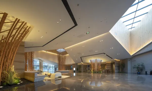 酒店坐落于素有江西四大名镇之称的吴城镇入口区域,毗邻鄱阳湖,水上公路,湖面沙山,地理位置得天独厚,致力打造成商务度假型酒店,规划总占地约221亩,总建筑面积约6万平米,分为会展中心和酒店两个项目,酒店外形参照群鸟形象,取意群鹤飞翔,占地约93亩,建筑面积3.5万㎡。