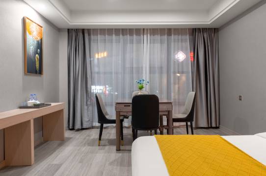 房间布局温馨,环境卫生都非常的满意,床品舒适,设施设备完善,房间厕所还有干湿分离,洗漱特别方便,一次性用品丰富,前台服务热情。交通便利,停车方便,出门就是美食街,吃东西也非常方便,前台还免费打印资料,开发票也非常方便,非常不错的一次体验.房间卫生环境也非常的满意,值得推荐哦。