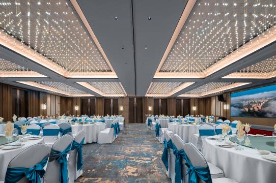 380㎡的豪华多功能宴会厅及大型会议室,设施设备齐全,配备高端音响及灯光设备,集会议、演出、宴会为一体,满足不同规格的商务会议需求。