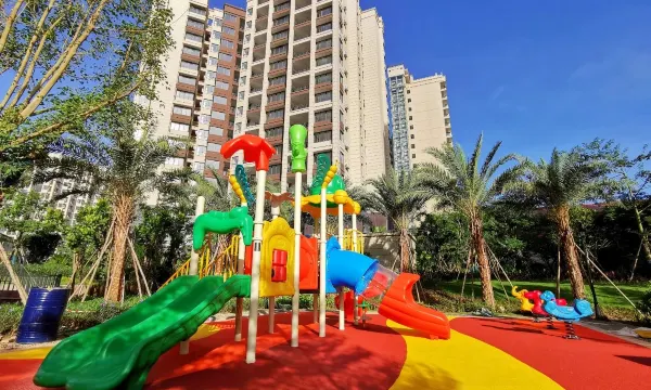 跟小区相通,绿化非常好,泳池很干净。楼下有旅居餐厅,自助餐物美廉价。距离集市1公里,购物还算方便。早餐尚可,吃饱没问题。河景房很惊艳,天天看对面的锦屏水墨画!