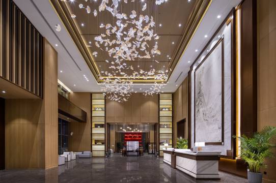 酒店坐落于武汉市蔡甸区新天大道与凤凰路交汇处,地处中核世纪广场大型商业综合体东侧,毗邻后官湖国家湿地公园,邻近九真山森林公园、知音湖旅游度假区、武汉花博汇等著名旅游景点,距离武汉沌口经济开发区、王家湾商圈驾车约15分钟,地铁4号线凤凰路站近在咫尺,周边配套齐全,交通便利。酒店秉承高山流水的设计理念,融合属地文化元素,续写知音邂逅故事,营造“结庐在人间 而无车马喧”的城市花园静谧体验,拥有设施完备的各式智能客房和套房。酒店设有会议室、多功能厅、中西式自助餐厅、健身房等配套设施,停车位充足,满足多样化的不同需求,是商务活动、旅游休闲的品质佳选。