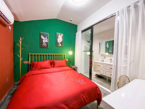 重金聘请当红民宿设计师倾力打造,民宿仅有4间精致轻奢客房(粉红恋人、红鸾心动、绿野仙踪、爱马仕风四种新潮风格),前沿设计理念,大胆复古撞色风格,让您耳目一新。合理舒适温馨的空间欢迎您入住,粉红恋人主题房,干净的浴缸可以泡个美美的澡,大落地窗尽享广阔视野和温暖阳光。