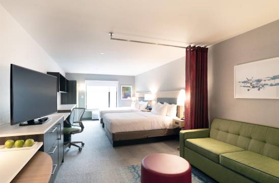 107 间空调客房提供备有大冰箱和微波炉的简易厨房;您定能在旅途中找到家的舒适。提供 50 英寸平板电视,且可观看数码频道。便利设施包括可存放笔记本电脑的保险箱和书桌,以及带有免费市内通话的电话。