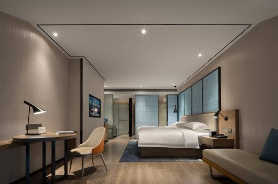 设施:酒店设施齐全,智能语音系统角度。智能角度控制空调电视。离高铁南站很近。前台服务人员服务态度温和。